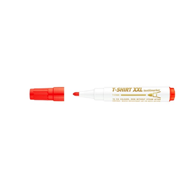 - Pamut, selyem, vászon, ruházat, tornacipő, póló, táska stb. dekorálására, írására, jelölésére alkalmas marker - Kerekített csúccsal, vízbázisú festékkel töltve, rendkívüli színtartóssággal és magas fényállósággal - XXL kialakítás: megnövelt élettartam a nagyobb méretű testnek köszönhetően - A dekoráció rögzítése gőzmentes bevasalással történik - Rögzítés után 60 °C-ig mosható - Vonalvastagság: 1-3 mm - Szín: piros