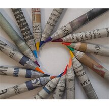 Használt újságpapírból készült színes ceruzák, Upcycled - Azaz olyan újrahasznosított, többletértékkel rendelkező termék, mely maradékanyagokból készült. Törésbiztos. Könnyen hegyezhető. Kíméli az erdeinket. Alacsony energiafelhasználású gyártás. 12 db színes ceruza/doboz Ragyogó, élénk színek. Újrahasznosított kartonból készült csomagolásban.