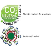 Nem hagy ökológiai lábnyomot. A gyártás során 100%-ban megújuló enegiaforrásokat használnak fel. A termékek méretének csökkentésével a gyártás és szállítás folyamán kevesebb energiaforrás szükséges. A megjelölt termékek 65%-ban újrahasznosítható anyagból készültek, illetve a felhasználást követően is újrahasznosíthatóak. A gyártási folyamat során szükségszerúen keletkezett CO2 kibocsátást, a Trodat a WWF által javasolt - Gold Standars Climate Protection Project - klímavédelmi projektbe történő befektetéssel egyenlíti ki.